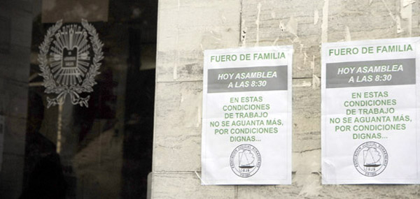Recordemos que los trabajadores que se desempeñan en el edificio de calle 58 como de calle 46 padecen cotidianamente y deben enfrentar el colapso del Fuero. Falta personal, insumos. Hay paredes electrificadas, desbordes cloacales, baños tapados, entre otras falencias.