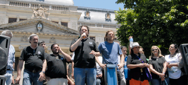 Allí el secretario General de la AJB, Pablo Abramovich, se dirigió a los manifestantes haciendo un reconocimiento “a los cientos de trabajadores judiciales, estatales  y docentes que están movilizados y haciendo paros y medidas locales a lo largo y ancho de la provincia”.