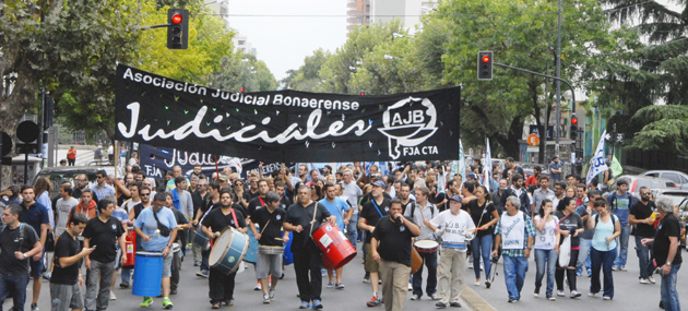 Cientos de trabajadores judiciales se movilizaron ayer por la capital bonaerense en el marco del paro convocado por la AJB, ATE y CICOP. Asambleas departamentales este viernes.