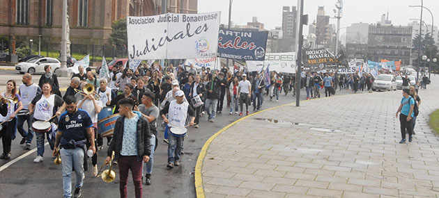 Cientos de judiciales se manifestaron en la Corte y en el Ministerio de Justicia para exigirle a María Eugenia Vidal una oferta salarial digna, que permita poner fin al largo conflicto que vienen sosteniendo desde hace meses con el gobierno provincial.