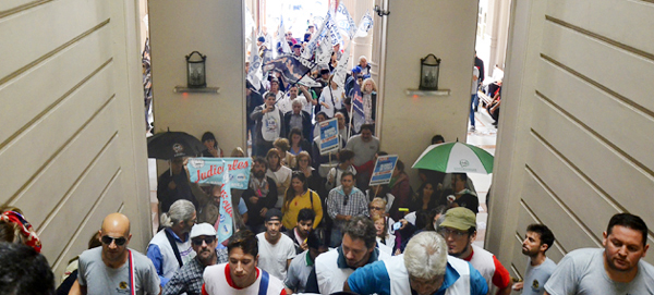 El pasado miércoles 24, trabajadorxs judiciales provenientes de los diecinueve departamentos judiciales se habían dado cita en la ciudad de La Plata en reclamo de la reapertura de la paritaria 2018 y el inicio de las negociaciones correspondientes a 2019.