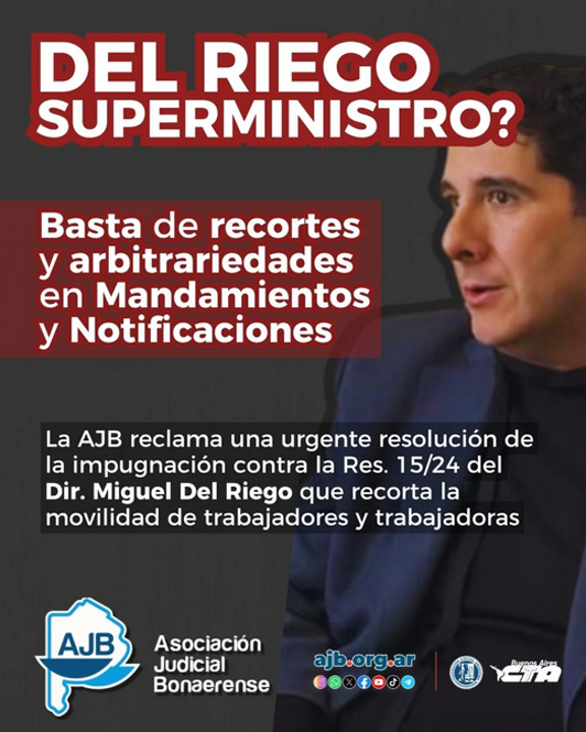 Desde la AJB venimos advirtiendo hace tiempo que Del Riego actúa por fuera de todo marco normativo. Su permanencia solo genera conflictividad, desorganización y malestar.