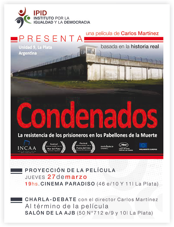 El 27 de marzo se presentará la película Condenados, sobre la resistencia de los prisioneros en los pabellones de la muerte en la Unidad 9. Será en el Cinema Paradiso de La Plata.