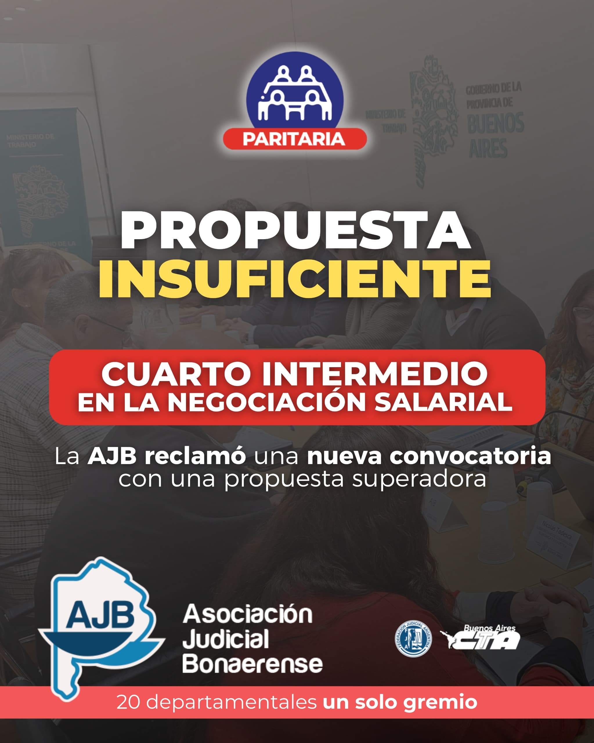 Propuesta insuficiente y cuarto intermedio en la negociación salarial entre el Ejecutivo y la AJB