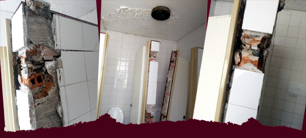 El lunes por la mañana, la caída de una puerta del baño del sexto piso del edificio ubicado en Almirante Brown y Tucumán, de la ciudad de Mar del Plata, puso en riesgo la integridad física del trabajador judicial que se encontraba en el lugar. La caída fue provocada por la falta de mantenimiento de la mampostería, el revestimiento y los herrajes.